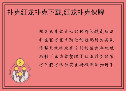 看起来你很想提升在红龙扑克上的技巧,通过观看视频来学习是个非常高效的办法。虽然搜索结果中没有提供一个直接的“视频大全”链接,但我为你梳理了在红龙扑克平台上寻找高质量视频资源的途径和学习建议,希望能帮助...